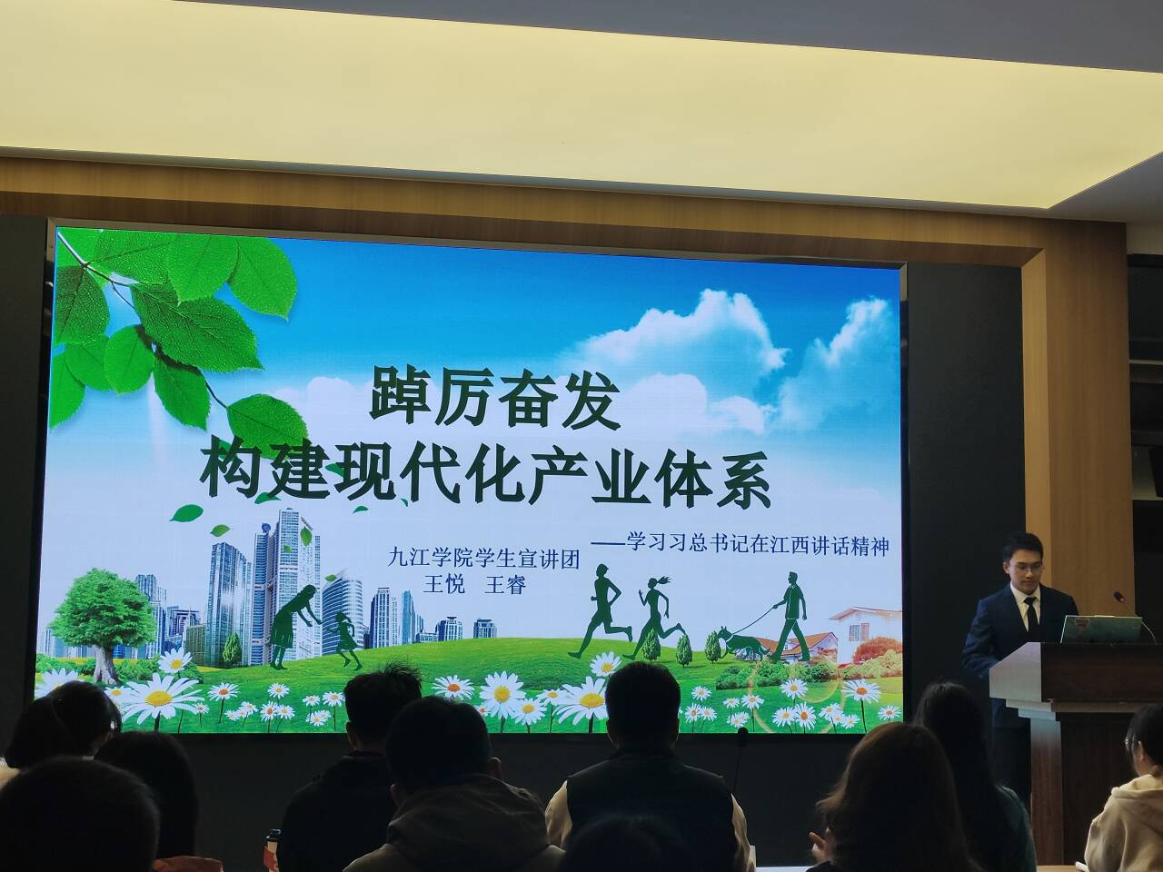 為學習貫徹習近平總書記考察江西重要講話精神,發揮理論宣講凝心聚氣作用,彰顯新時代青年大學生的擔當作為,推動黨的創新理論入腦入心,九江學院青馬宣講團開展習近平總書記考察江西重要講話精神主題宣講。