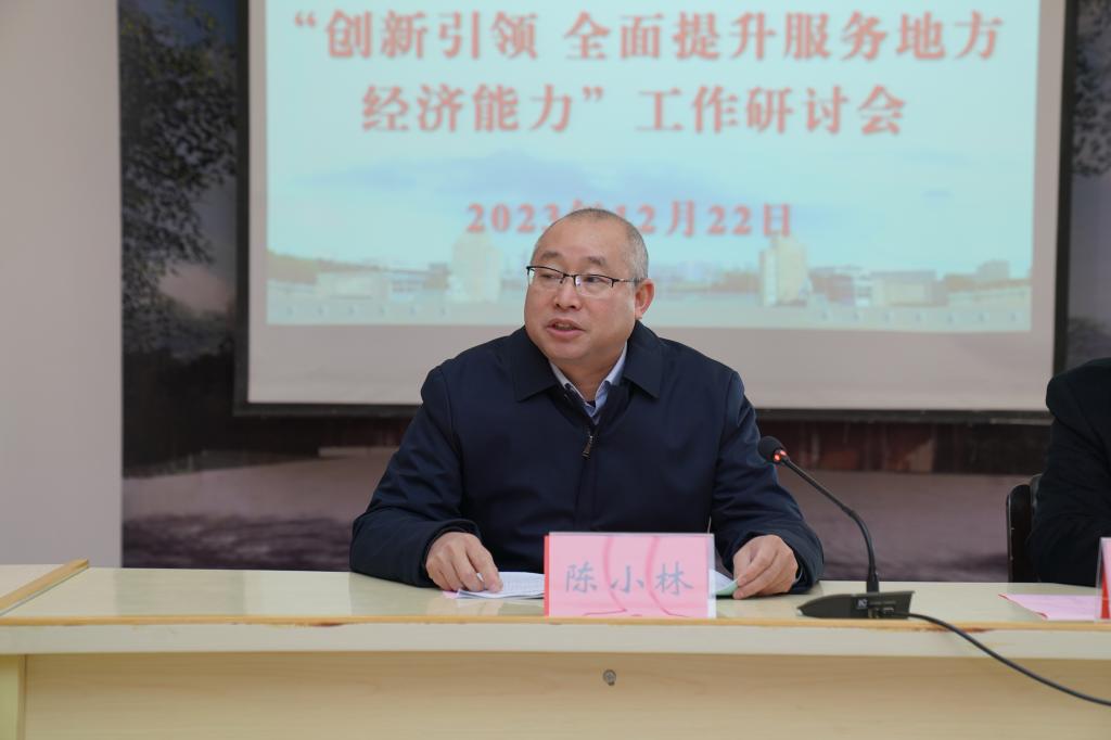 為助力學(xué)校應(yīng)用型轉(zhuǎn)型,融入省市發(fā)展戰(zhàn)略,積極提升學(xué)校服務(wù)地方經(jīng)濟(jì)能力,12月22日下午,我校在行政樓一號(hào)會(huì)議室召開“創(chuàng)新引領(lǐng)、全面提升服務(wù)地方經(jīng)濟(jì)能力”工作研討會(huì)。校長(zhǎng)陳小林出席會(huì)議并講話,副校長(zhǎng)嚴(yán)平主持會(huì)議。