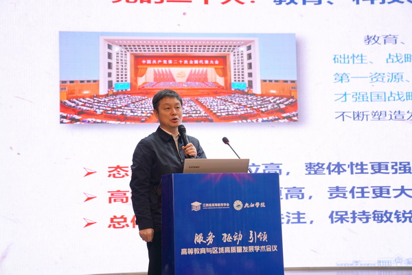 陳小林代表九江學(xué)院致辭。他表示,高校是教育、科技、人才的交匯點(diǎn),高等教育應(yīng)圍繞區(qū)域經(jīng)濟(jì)社會(huì)發(fā)展需求,不斷提升對(duì)高質(zhì)量發(fā)展的支撐力和貢獻(xiàn)度,切實(shí)以教育高質(zhì)量發(fā)展支撐區(qū)域經(jīng)濟(jì)社會(huì)高質(zhì)量發(fā)展。此次會(huì)議的召開有助于精準(zhǔn)把握高等教育服務(wù)區(qū)域高質(zhì)量發(fā)展的路徑,更好地發(fā)揮高校在教育、科技、人才方面的聚合作用。