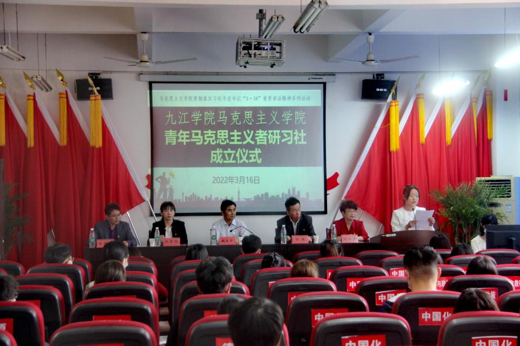 打造學校首個紅色思政社團。學校在擦亮“文心琢玉”思政工作品牌的基礎上,成立以“研習馬克思主義,傳承紅色基因,爭當時代新人”為宗旨的九江學院青年馬克思主義者研習社,積極支持和引導青年大學生學習和宣傳馬克思主義尤其是中國當代馬克思主義——習近平新時代中國特色社會主義思想。研習社每半年組織1期“觸摸經典”讀書班,每期配備5名思政課教師作為指導教師,每期招收30名左右的學生。通過“師生共讀一本書”的方式,引導學生學習《共產黨宣言》《毛澤東傳》《習近平的七年知青歲月》《問道馬克思——為什么信仰馬克思主義?》等,開展“世界讀書日活動”“每日清晨誦讀打卡”“每周小組分享”“每月師生交流”“精彩讀書筆記展示”等特色活動,督促學生扎扎實實學習馬克思主義理論,幫助學生深入學習領會習近平新時代中國特色社會主義思想的核心要義,自覺做習近平新時代中國特色社會主義思想的堅定信仰者、忠實實踐者。黨的二十大勝利召開以后,研習社迅速行動,精心組織社團成員開展理論學習活動,成立了“青馬研習社學習宣傳黨的二十大精神學生宣講團”,在校團委的統一安排下,到各二級學院學生中開展理論宣講活動。成立以來,該社團堅持將思想政治教育根植社團建設,形成了政治性強、理論性深、趣味性濃、特色鮮明、覆蓋面廣的社團文化育人的生動局面,成為學校馬克思主義理論宣傳和實踐的前沿陣地。