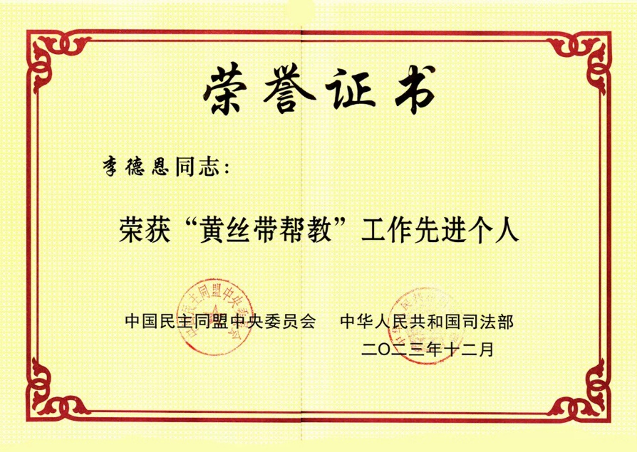 “黃絲帶幫教”行動是由民盟中央和司法部聯合發起的針對罪犯等特殊人群開展關懷、幫扶和教育救治,促使他們更好回歸社會的一項全國性公益性活動。我校法學院李德恩教授發揮自身智力優勢,助力我市司法行政部門做好社會管理工作,積極參與“黃絲帶幫教”行動,堅持開展特殊人群的幫扶引導實踐,用真心和熱情去感化每一位需要幫助的人,獲得了良好的社會反響。