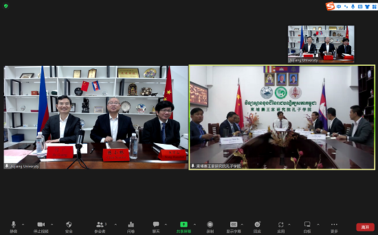 5月10日上午,柬埔寨王家研究院孔子學院2024年理事會會議在線上舉行。九江學院校長陳小林,副校長王萬山,理事長、柬埔寨王家研究院院長宋獨(Sok Touch)和其他理事會成員參加了會議。