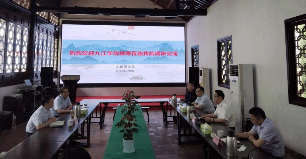 隨后,雙方在白鹿洞書院進行了座談。李明斌回顧了九江學院和廬山市特別是白鹿洞書院之間的長期友好合作,對已取得的豐碩成果表示肯定。袁勇對九江學院長期以來對廬山市經濟社會發展的支持表示感謝,并介紹了廬山市文化旅游發展概況。雙方著重就加強校地雙方合作,共同傳承弘揚白鹿洞書院文化進行深入交流,達成多項共識。