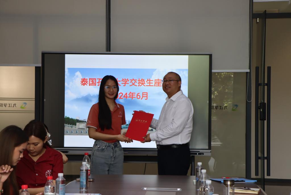 6月6日上午,泰國孔敬大學交換生座談會在大學科技園舉行。校長陳小林出席座談會,為交換生頒發(fā)結(jié)業(yè)證書。副校長王萬山、國際交流合作處和國際教育學院負責人出席活動。