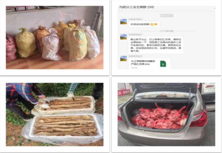 九江學(xué)院在幫扶過程中,不僅注重提高農(nóng)民的生產(chǎn)技能和農(nóng)產(chǎn)品品質(zhì),還結(jié)合學(xué)院專業(yè)特色開展產(chǎn)學(xué)研合作,助力當(dāng)?shù)靥厣a(chǎn)業(yè)發(fā)展。為了引導(dǎo)師生關(guān)注雙新村經(jīng)濟(jì)發(fā)展,提高消費(fèi)幫扶意識(shí),方便師生購買優(yōu)質(zhì)農(nóng)產(chǎn)品,激發(fā)雙新村村民種植、養(yǎng)殖的積極性,九江學(xué)院還積極搭建平臺(tái),促進(jìn)農(nóng)產(chǎn)品銷售。校工會(huì)號(hào)召全校工會(huì)會(huì)員開展“以購代捐”消費(fèi)幫扶,引導(dǎo)教職工采購雙新村特色農(nóng)產(chǎn)品;駐村工作隊(duì)利用周末回家的機(jī)會(huì),用私家車送到每位教職工手中,打通消費(fèi)幫扶“最后一公里”。同時(shí),學(xué)校后勤管理處在教工食堂超市設(shè)立專柜銷售雙新村特色農(nóng)產(chǎn)品,并利用春節(jié)等節(jié)點(diǎn),開展農(nóng)產(chǎn)品展銷活動(dòng)。