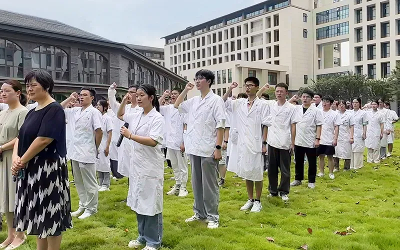 儀式上,學生代表向雕塑獻花,并宣讀醫學誓詞。