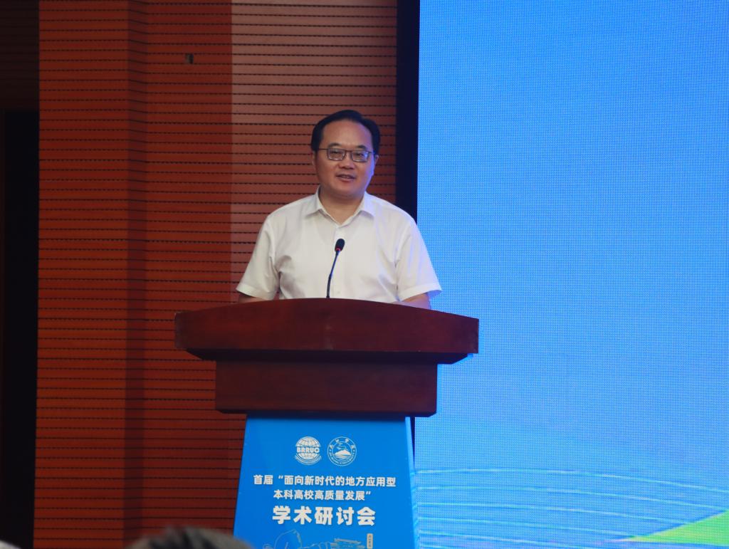 杜少華代表九江市政府致辭。他表示,九江是歷史文化名城,泱泱長江水,匯聚潯陽城。目前,九江正致力于建設(shè)長江經(jīng)濟帶重要節(jié)點城市。在此時期,地方應(yīng)用型本科高校應(yīng)該聚焦轉(zhuǎn)型發(fā)展中的熱點問題,汲取各方智慧,探索發(fā)展路徑。希望各位專家學(xué)者,以本次研討會為契機,使應(yīng)用型本科高校發(fā)展與城市轉(zhuǎn)型建設(shè)緊密融合、互為助力,以學(xué)術(shù)錚錚清音叩響九江社會經(jīng)濟高質(zhì)量發(fā)展之歌。