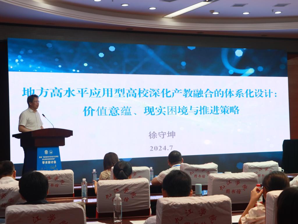 徐守坤作了題為《地方高水平應(yīng)用型高校深化產(chǎn)教融合的體系化設(shè)計:價值意蘊、現(xiàn)實困境與推進策略》的報告。他強調(diào),地方應(yīng)用型高校的深化發(fā)展要以產(chǎn)教融合建設(shè)為抓手,把握機遇與挑戰(zhàn),從自身辦學(xué)基礎(chǔ)出發(fā),充分發(fā)揮優(yōu)勢與特色,量體裁衣、擺脫束縛,找到一條與應(yīng)用型高校本身相契合的發(fā)展道路。