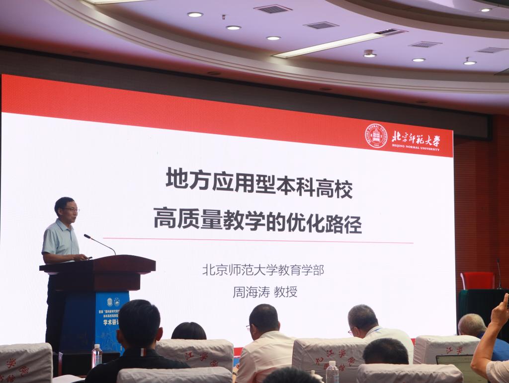 周海濤作了題為《地方應(yīng)用型本科高校高質(zhì)量教學(xué)的優(yōu)化路徑》的報告。報告聚焦地方應(yīng)用型本科高校教學(xué)的發(fā)展特征、現(xiàn)存問題、優(yōu)化路徑這三個模塊,逐級推進、層層鋪開,闡述地方應(yīng)用型本科高校在發(fā)展過程中的痛點、難點與破局之法。