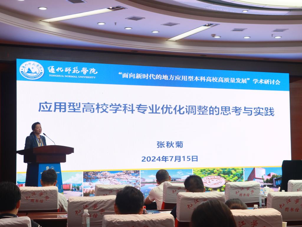 張秋菊作了題為《應(yīng)用型高校學(xué)科專業(yè)優(yōu)化調(diào)整的思考與實踐》的報告。報告以應(yīng)用型高校學(xué)科專業(yè)調(diào)整的背景使命為基點,指向?qū)?yīng)用型高校學(xué)科專業(yè)時代性、地方性、應(yīng)用型、一體化發(fā)展定位的思考。同時,以通化師范學(xué)院的實踐之路,彰顯應(yīng)用型高校發(fā)展過程中的地域特色與專業(yè)建設(shè)特色。