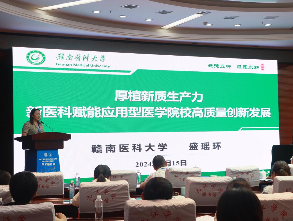 盛瑤環(huán)作了題為《厚植新質(zhì)生產(chǎn)力:新醫(yī)科賦能應(yīng)用型醫(yī)學(xué)院校高質(zhì)量創(chuàng)新發(fā)展》的報告。報告將發(fā)展新質(zhì)生產(chǎn)力與應(yīng)用型本科高校的建設(shè)深度鏈接,以贛南醫(yī)科大學(xué)的發(fā)展征程為藍本,探討其在“新醫(yī)科”發(fā)展中的創(chuàng)新做法,打造具有地方特色與學(xué)科特點的人才培養(yǎng)高地。
