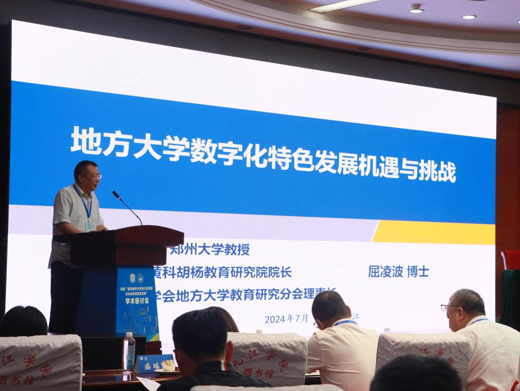 屈凌波作了題為《地方大學(xué)數(shù)字化特色發(fā)展機遇與挑戰(zhàn)》的報告。報告圍繞數(shù)智時代高等教育發(fā)展面臨的挑戰(zhàn)、高等教育模式的重塑與重構(gòu)這兩個方面,探討地方普通本科高校在迎接數(shù)智化教育時代的浪潮中,應(yīng)該如何通過培養(yǎng)促進新質(zhì)生產(chǎn)力發(fā)展的創(chuàng)新型應(yīng)用型人才,穩(wěn)健地走向數(shù)字化轉(zhuǎn)型之路。