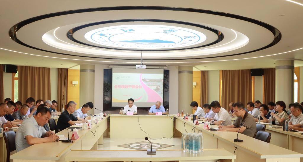 7月17日,學校在行政樓一號會議室召開全校領導干部會。校黨委書記李明斌出席并講話。校長陳小林就學校暑期和下學期期初有關工作進行部署。副校長王萬山主持會議,校領導查振華、王殿元、李松志、魯衛東、雷志強,黨委委員劉遵海、劉平、楊杰出席會議。
