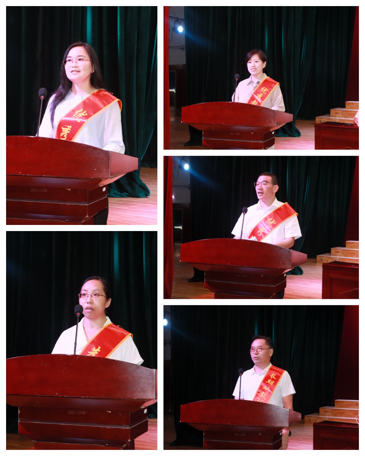 優秀教師代表、經濟學院張敏,優秀教育工作者代表、教學質量監控與評估處楊麗娜,優秀班主任代表、材料科學與工程學院孫國棟,先進集體代表、管理學院人力資源管理教研室主任張科靜老師,長期從教30年教師代表、計算機與大數據科學學院朱順文帶著自身從教的感人故事,走上講臺,用真摯的情感和生動的語言,與在場的師生們分享教育的喜悅與收獲。