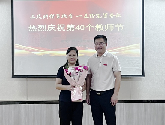 伴隨著歡樂的音樂聲,校領導為“優秀教師”“優秀教育工作者”“優秀輔導員”“優秀班主任”、長期從教三十年的教師代表和先進集體代表頒發榮譽證書和獎品。
