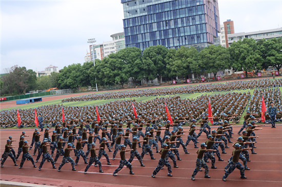 在高亢的口號聲中,各軍訓方陣邁著整齊的步伐,斗志昂揚地通過主席臺,接受莊嚴檢閱。軍訓成果展示環節,標兵連隊列、軍旅拳、匕首操等匯報表演贏得了在場領導和觀眾的陣陣掌聲。新生們訓練有素,勇敢堅毅,全面展示了九院學子蓬勃向上的青春風采。