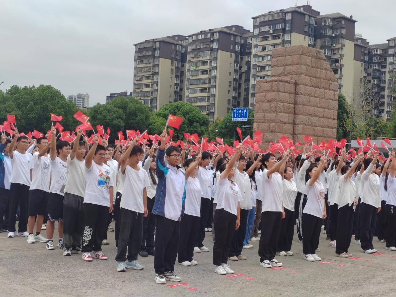 8時整,參加升旗儀式的師生代表們在升旗臺前整齊列隊,儀式正式開始。國旗班隊員們身姿挺拔俊逸,步伐鏗鏘有力,護送國旗入場。“升國旗,奏唱國歌!”隨著一聲號令,升旗手鄭重而有力地將國旗拋向天空。伴隨著《義勇軍進行曲》雄壯的旋律,五星紅旗在晨曦中緩緩升起、迎風飄揚,全場肅然靜立,深情仰望國旗,齊唱國歌,愛國情懷在每位師生心中升騰。