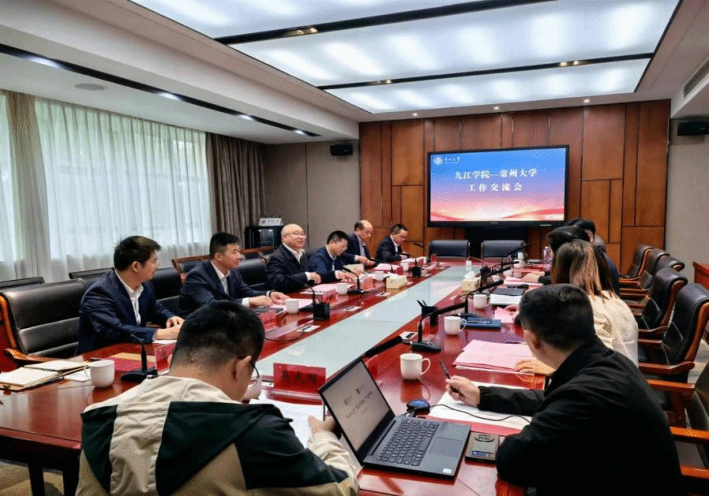陳小林介紹了九江學院的辦學歷程和辦學特色,進一步介紹了九江學院作為長江經濟帶重要節點城市高校,圍繞學校與地方同步高質量發展的具體做法,并邀請張兵校長及常州工學院的老師到九江學院調研交流。我校教務處、科研處、創新創業學院、化工學院等單位與常州工學院教務處、科技處、創新創業學院、化工與材料學院開展了對口交流。
