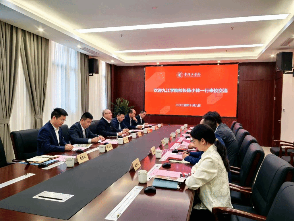 在常州工學院考察交流期間,常州工學院校長張兵、副校長蒼玉權等領導熱情接待了陳小林一行,在交流座談會上,張兵熱情回顧了今年上半年到九江學院作專題報告的愉快經歷,介紹了常州工學院的辦學情況,重點介紹了學校在學術研究、國家級項目立項、產教融合特色等方面的情況。