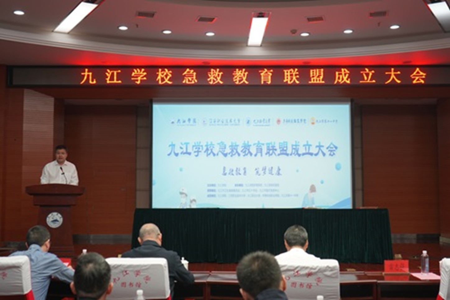 10 月 12 日上午,九江學校急救教育聯盟成立大會在我校逸夫圖書館報告廳隆重舉行。九江市政府副市長馬海威出席,九江學院黨委副書記、校長陳小林致辭,九江學院黨委委員、副校長雷志強主持。九江市紅十字會、九江市衛健委、江西職業技術大學、九江職業大學、九江市醫療急救中心、共青科技職業技術學院、九江市第十一中學等部門和學校相關負責同志,九江學院相關部門、二級學院負責同志、師生代表等100余人參加大會。