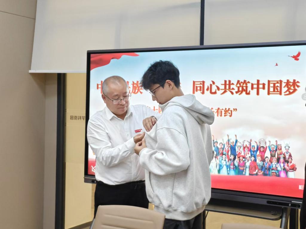 活動接近尾聲時,陳小林為各位同學佩戴校牌并合影留念,現場洋溢著和諧溫馨的氛圍。