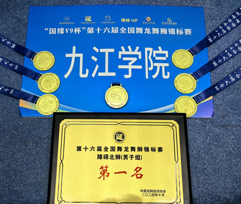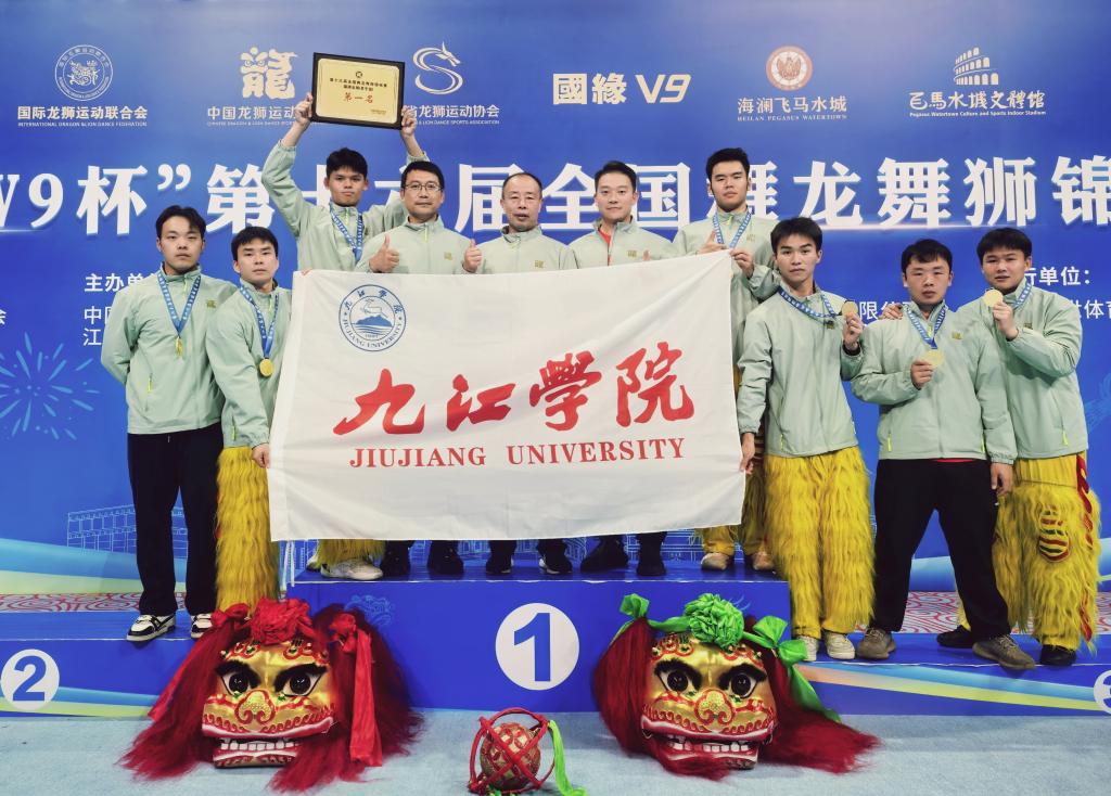 10月24日上午,第十六屆全國舞龍舞獅錦標賽在江蘇省江陰市隆重開幕。九江學院舞龍舞獅隊與北京體育大學、上海體育大學、武漢體育學院、廣州體育學院、湖南師范大學、復旦大學、湖北大學、中南民族大學等60多所高校及40多個高水平社會團體同場競技,經過教練員和運動員們的奮力拼搏,九江學院舞龍舞獅隊一舉奪得全國冠軍。