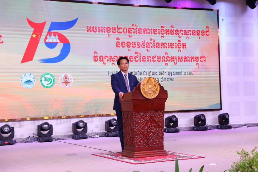 宋獨(dú)致辭中對(duì)所有支持孔子學(xué)院發(fā)展的機(jī)構(gòu)和個(gè)人表示了感謝。他回顧了孔子學(xué)院發(fā)展歷程和成就,強(qiáng)調(diào)中文教育在柬中文化交流中的重要作用,表示將繼續(xù)推動(dòng)中文教育和文化交流。