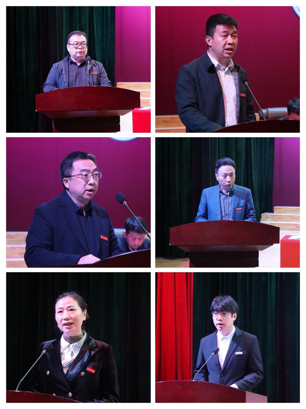 黨政辦公室、教務處、旅游與地理學院、機械與智能制造學院負責人作為職能部門、二級學院代表作迎評工作表態發言。師生代表作迎評倡議發言。