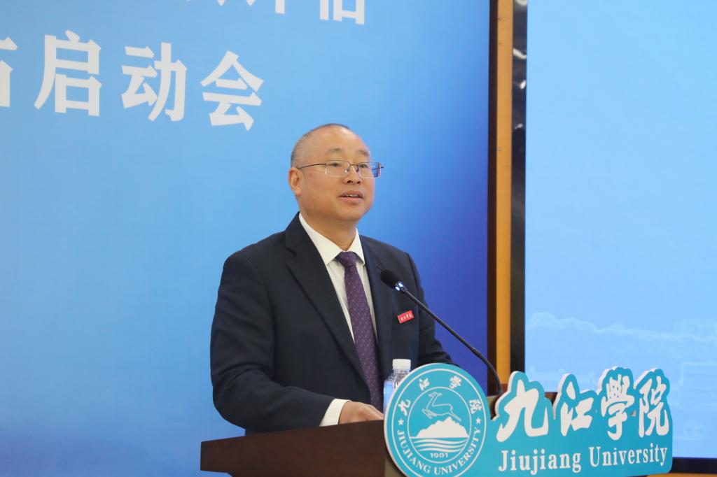 嚴余松介紹了新一輪本科教育教學(xué)審核評估的專家組成員、項目管理員、秘書組成員,以及評估工作的主要任務(wù)、內(nèi)容和要求。他強調(diào),專家組將始終堅持以立德樹人成效為根本標準,秉持實事求是、全面合理的原則,始終保持公正客觀的評價態(tài)度,確保評估結(jié)論科學(xué)、客觀、公正。專家組還將嚴格遵守評估紀律,以實際行動踐行“陽光評估”的理念和要求。他希望學(xué)校以積極的學(xué)習(xí)心態(tài)、開放的姿態(tài)和正常的工作狀態(tài)迎接評估,客觀、準確、真實地提供評估材料。專家組也將與學(xué)校一道,分析改革發(fā)展中的困難與問題,共同探討解決路徑,為九江學(xué)院建設(shè)特色鮮明的高水平應(yīng)用型大學(xué)貢獻智慧與力量。