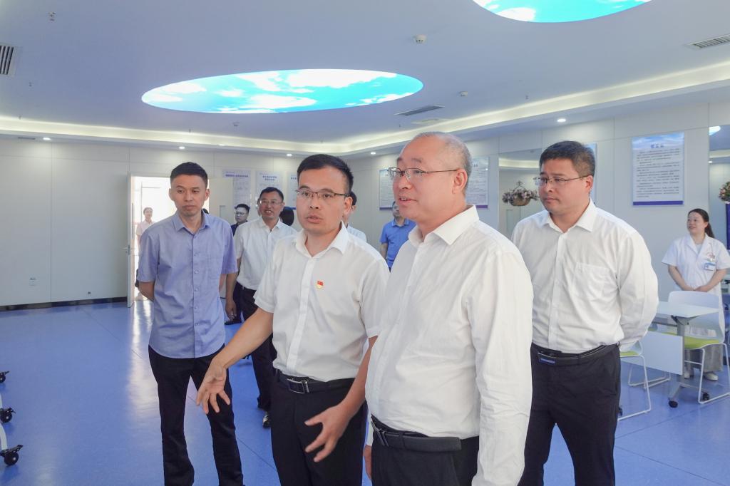 座談會前,陳小林一行考察了修水縣第一人民醫院醫學培訓中心、臨床技能操作培訓中心、遠程醫學中心、學術報告廳、臨床科室示教室、健康體育館和醫學大數據中心等教學場所建設情況。