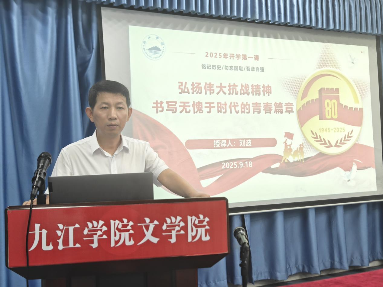9月18日,黨委委員、紀委書記劉波為文學院A2523和A2561班學生上思政課。