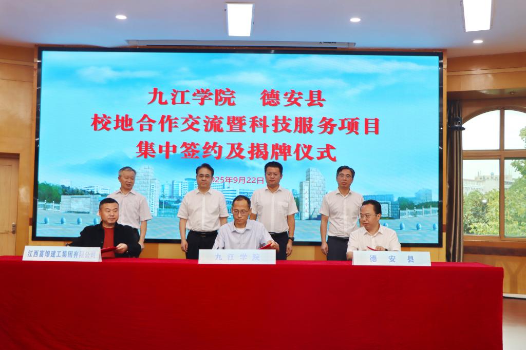 李明斌在致辭時首先感謝德安縣長期以來給予學校建設發展的鼎力支持,并簡要介紹了學校基本情況和服務地方經濟社會高質量發展的舉措。他表示,作為贛北地區唯一一所碩士學位授予單位高校,九江學院充分發揮人才和智力優勢,主動融入地方經濟社會發展,制定實施“服務九江經濟社會發展20條”,大力推進“十百千”社會服務體系建設,組建科技服務領軍團、高層次人才服務隊、高質量發展教師服務隊,打造地方高校科技賦能地方高質量發展新模式。7月份雙方簽署戰略合作協議,開啟了校地深化合作、共謀發展的新征程,這次集中簽訂科技服務項目,有利于進一步推動戰略合作協議落到實處,是雙方深入貫徹落實習近平總書記考察江西重要講話精神的生動實踐,也是校地融合發展的有益探索。