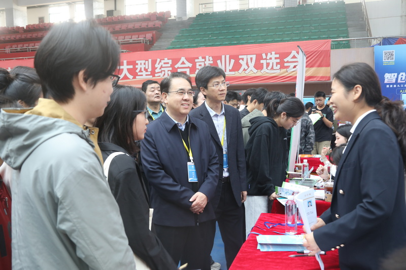 秋風(fēng)送爽,才聚校園。為全面落實(shí)黨中央、國務(wù)院、教育部、江西省關(guān)于高校畢業(yè)生就業(yè)工作的決策部署,促進(jìn)學(xué)校畢業(yè)生高質(zhì)量充分就業(yè),11月1日,九江學(xué)院2026屆畢業(yè)生大型綜合就業(yè)雙選會(huì)在丹楓園體育訓(xùn)練中心成功舉辦。九江學(xué)院黨委書記李明斌,黨委委員、副校長查振華來到現(xiàn)場指導(dǎo),親切看望師生和企業(yè)代表。