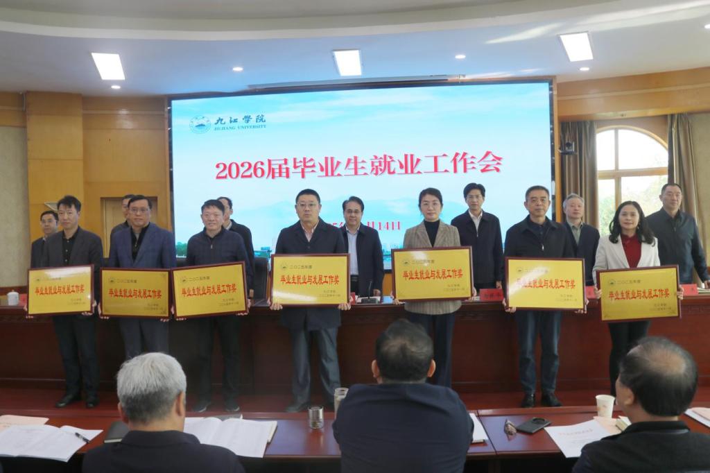 會上,校領導為獲得2025年度畢業(yè)生就業(yè)與發(fā)展工作獎的二級學院頒發(fā)了獎牌,招生與就業(yè)處負責人全面分析了2025屆畢業(yè)生就業(yè)工作情況,藥學與生命科學學院、旅游與地理學院、法學院、管理學院代表做了典型發(fā)言和表態(tài)發(fā)言。黨政機關及教輔部門負責人,有2026屆全日制畢業(yè)生的二級學院黨委書記、院長、黨委副書記,就業(yè)專職輔導員、招生與就業(yè)處就業(yè)科室工作人員參加會議。