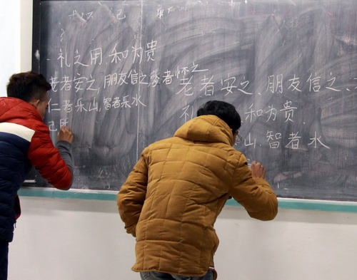 學院先后為孔子學院獎學金生安排了茶藝欣賞課、音樂欣賞課、書畫課等文化體驗課。2015年元旦,還安排了包餃子活動,使學生體驗中國飲食文化。為了讓留學生進一步了解九江地域歷史文化,安排學生赴九江博物館、九江城市規劃館、廬山、白鹿洞書院等地進行了文化體驗。留學生們感受深刻,寫下心得體會10余篇。