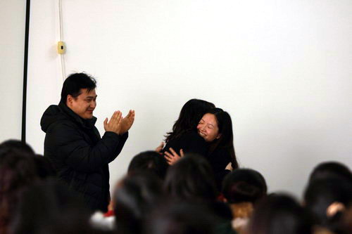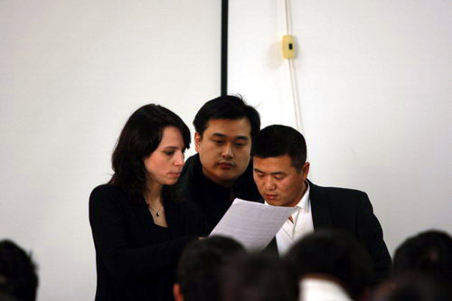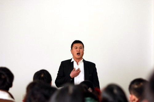 上課過程中,藝術學院師生紛紛向熊先生和莎拉女生請教專業上的問題。其中有以意大利歌曲向莎拉女士請教的,也有以中文歌曲向熊先生請教的。音樂家們分別針對每個人的情況進行分析,指出了演唱者的不足之處,提出相對應的解決方法以及一些專業性的演唱技巧,并親身示范,這使得在座師生受益匪淺。有老師在唱歌過程中因太過投入而潸然落淚,熊先生對這位老師做出了高度的評價和贊賞:“唱歌的最高境界就是能感動到自己,無疑這位老師做到了?!爆F場響起雷鳴般的掌聲。