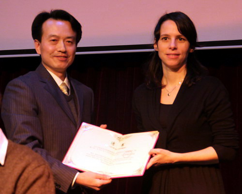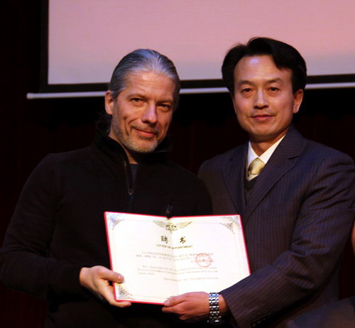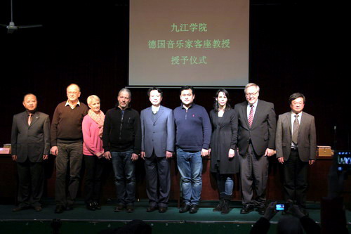 歐陽時來副院長首先簡單介紹了來自德國音樂家團隊每位成員的相關情況。接著,藝術學院院長吳維勇為德國音樂家團隊頒發了聘書,黨委書記王春生向德國音樂家團隊贈送了禮品。