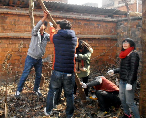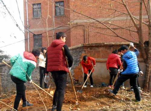 1月10、11日,學(xué)院組織部分沒有回家的同學(xué)到創(chuàng)業(yè)基地開展基礎(chǔ)建設(shè),主要是整理一塊閑置的空地。把空地上的雜草、樹枝處理掉,把地鏟平整。同學(xué)們干活非常賣力,熱火朝天,都希望為基地建設(shè)出一份力。