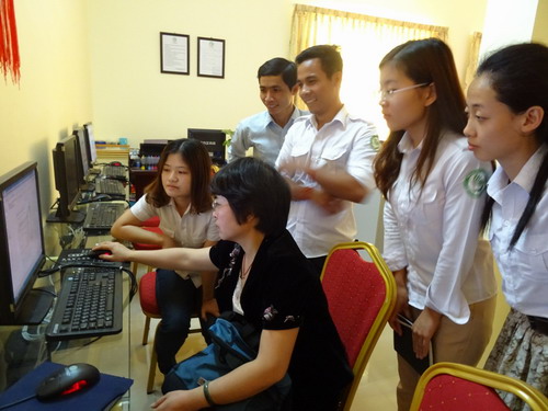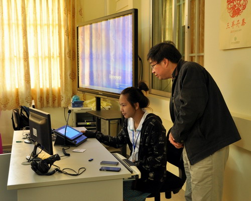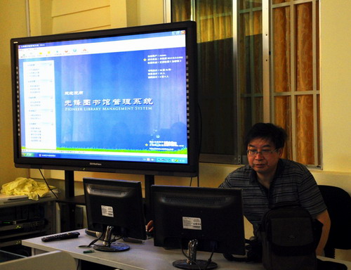 陳先平介紹向漢語教師志愿者介紹圖書館管理系統的使用