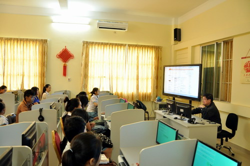 工作組本次來訪任務是繼續推進柬埔寨首家中文電子圖書館——孔子學院電子圖書館與九江學院的電子圖書館的連接工作。九江學院電子圖書館資源十分豐富,內涵幾百萬本圖書和期刊等,涉及政治、經濟、文化等各個領域。兩館電子圖書館從2012年就進行了連接,工作組就電子圖書館的技術及使用進行了現場教學和培訓,王家研究院的研究人員及孔子學院的學員通過互聯網可以免費地享受這些資源。