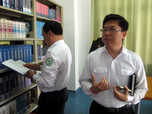 活動結束后,恒金樹陪同謝莫尼勒、帥式毅參觀了陸軍學院圖書館和校園,雙方就孔子學院2015年向陸軍學院贈書及安排“文藝巡演”等事宜達成了一致意見。