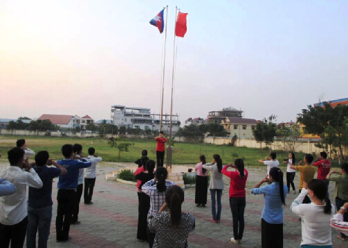 2月6日下午,柬埔寨首都金邊涼爽,柬埔寨王家研究院孔子學院在孔子學院大樓前舉行“中國功夫體驗活動”。工作了一天的孔子學院院長謝莫尼勒(Chea Munyrith)、中方院長帥式毅、全體漢語教師志愿者,在孔子學院上晚課的學員等約100余人參加了活動。