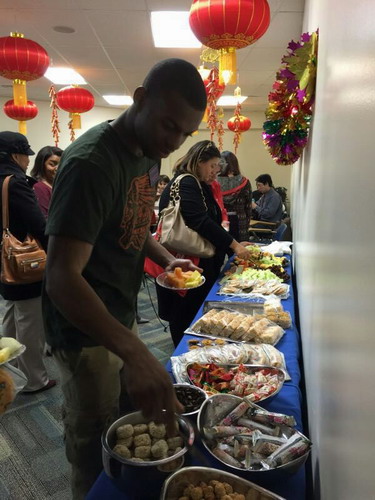 美國當地時間2015年2月18日晚,正值中國年味濃濃的大年三十,薩凡納州立大學孔子學院師生80余人在精心布置充滿喜慶的孔子學院教室歡聚一堂,共慶中國的傳統節日——春節!