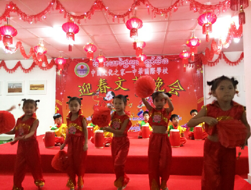 為了能邀請到孔子學院院長參加,大島洪森中學漢語中心 “歡樂中國年”的春節主題文化活動早在2月7日就上演了。100余名漢語中心學生自編自演的節目感動了嘉賓,聯歡會伴隨著《好運來》的歌聲開始,漢語歌曲《北京歡迎你》、《月亮代表我的心》、《蝸牛與黃鸝鳥》、《愛》博得觀眾熱烈掌聲,而院長和大家合唱大島洪森中學漢語中心版的《朋友》,將整個聯歡會推向高潮。