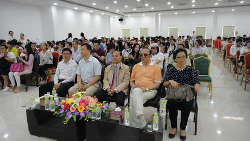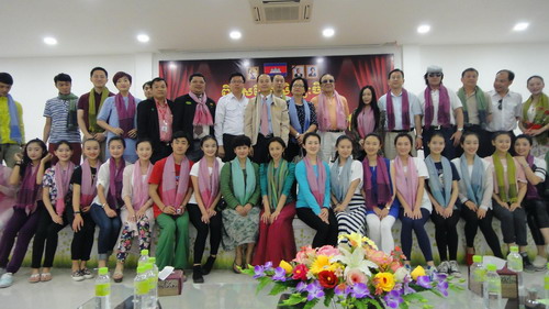 柬埔寨中華文化發(fā)展基金會秘書長黃瑞華、中國國務(wù)院僑辦政法司司長董傳杰、柬埔寨王家研究院孔子學(xué)院謝莫尼勒(Chea Munyrith)院長,中方院長帥式毅、亞歐大學(xué)校長謝索帕(Chea Sopheab)博士及近三百位師生代表齊聚一堂。藝術(shù)團團長董傳杰介紹了藝術(shù)團主要成員,包括中國著名歌唱家楊洪基(《三國演義》主題曲演唱者)、布仁巴雅爾(《吉祥三寶》演唱者)、郭蓉(《紅旗飄飄》演唱者)以及來自云南紅河州歌舞團的藝術(shù)家們。