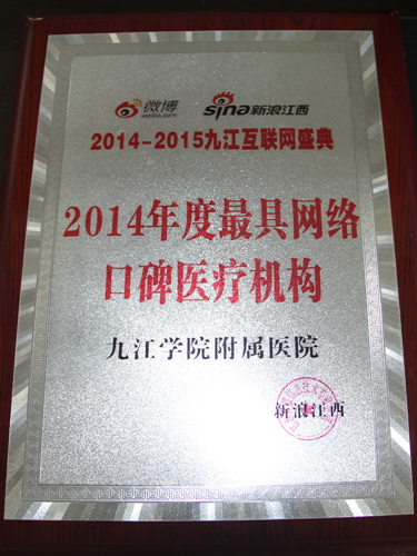 近日,在新浪江西2014-2015九江互聯網盛典上,臨床醫學院/附屬醫院獲得“2014年度最具網絡口碑醫療機構”。