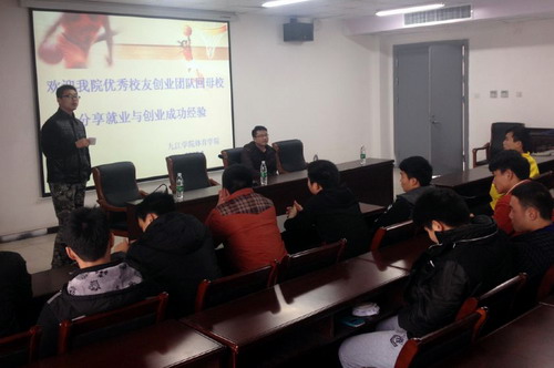 郭峰與創(chuàng)業(yè)團(tuán)隊(duì)主要成員之一曹楊斌一同返回母校,他們懷著三點(diǎn)希望。一是回來(lái)看望曾經(jīng)為自己成長(zhǎng)給予教育、幫助的領(lǐng)導(dǎo)和老師,感謝母校的培育;二是希望利用寒暑假等課余時(shí)間為學(xué)院貧困生提供一些勤工儉學(xué)崗位,同時(shí)也為學(xué)院學(xué)生提供職業(yè)能力培訓(xùn)的機(jī)會(huì);三是為學(xué)院畢業(yè)生就業(yè)與創(chuàng)業(yè)提供一個(gè)學(xué)習(xí)與實(shí)踐的平臺(tái)。