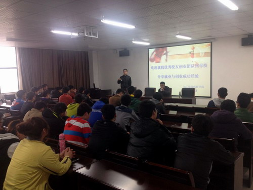在交流現(xiàn)場(chǎng),郭峰和曹楊斌分別向在座的領(lǐng)導(dǎo)、老師、師弟師妹分享了自己的創(chuàng)業(yè)經(jīng)歷,創(chuàng)業(yè)的艱辛與快樂(lè),并鼓勵(lì)師弟師妹們要扎實(shí)地打好專業(yè)理論與技能的基礎(chǔ),不斷豐富知識(shí)層面,積累社會(huì)實(shí)踐經(jīng)驗(yàn)。兩位校友坦言,只要不怕苦、不怕累,堅(jiān)持不懈的朝著自己的人生理想目標(biāo)努力奮斗,成功就一定在眼前。