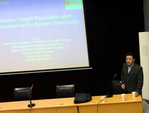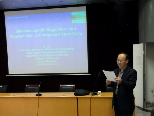 3月30日上午,在潯東校區學術報告廳,南開大學特聘教授、長江學者劉林博士應邀到基礎醫學院作了題為《多能干細胞端粒長度的調控及修復機制研究》的學術報告。基礎醫學院余朝陽書記、鄭美蓉副院長、汪鑫副院長、沒課的老師及部分學生參加學術講座。本次學術活動由基礎醫學院院長車向新主持。