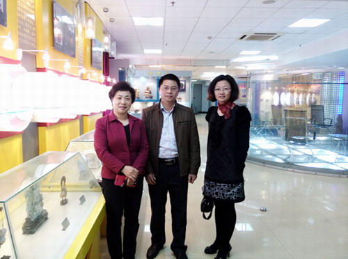 調研小組受到江西省地質礦產勘查開發局彭局長和江西地質博物館楊館長的熱情接待。楊館長介紹了江西省地質博物館基本情況,對各個展廳進行了詳細介紹,包括展廳設計、建設、陳列標本等。李院長對彭局長和楊館長的熱情接待表示感謝,并介紹了此次調研的目的。李院長介紹了旅游與國土資源學院地質陳列室的建設情況,并希望今后能與省地質博物館進行更多的交流和合作。調研結束,楊館長代表省地質博物館贈送了一批江西省地域特色的礦石標本,以表示對我院實驗室建設的支持。